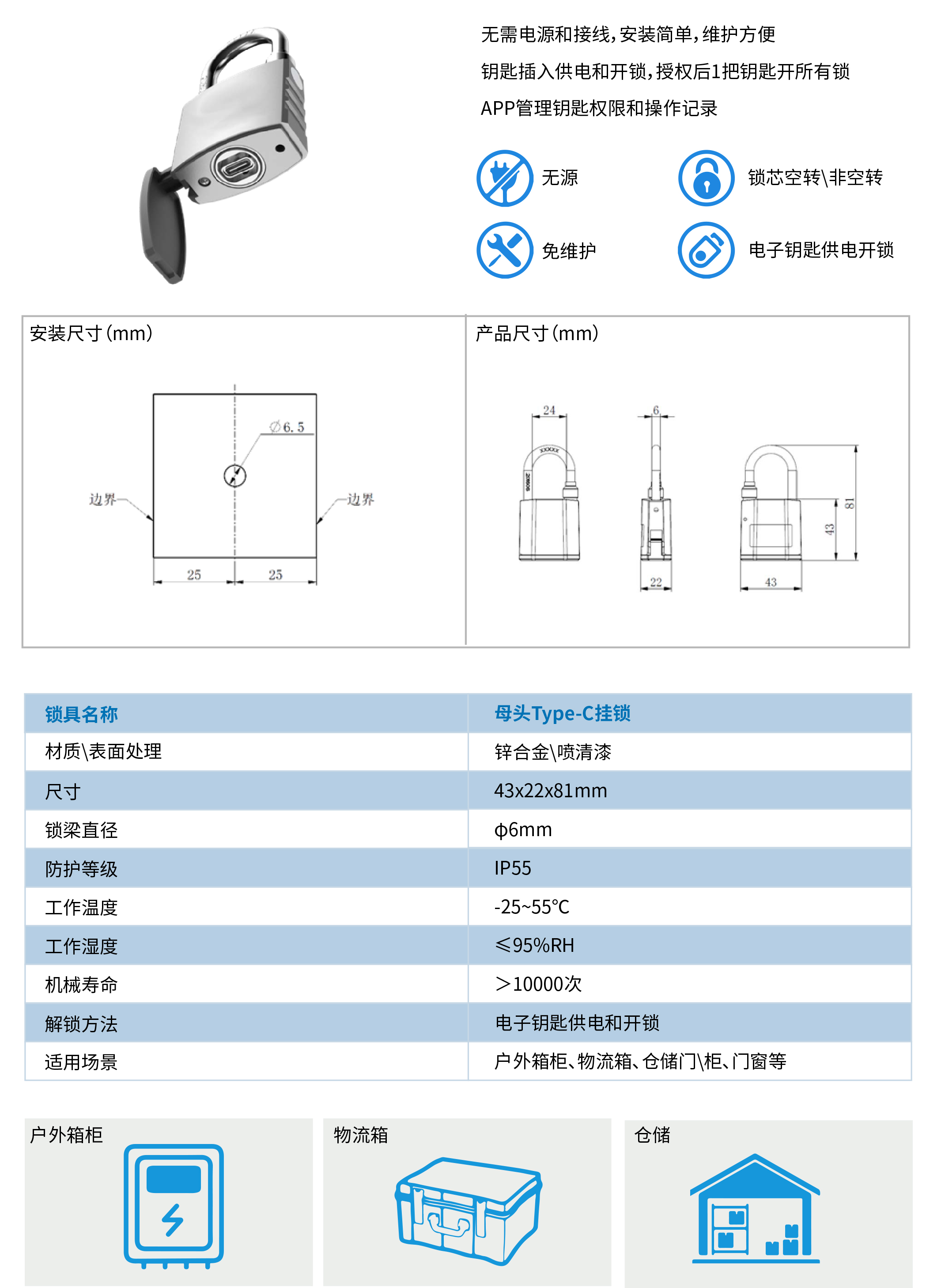 智能(néng)電(diàn)子(zǐ)挂鎖,可(kě)使用(yòng)APP對(duì)電(diàn)子(zǐ)鑰匙授權
