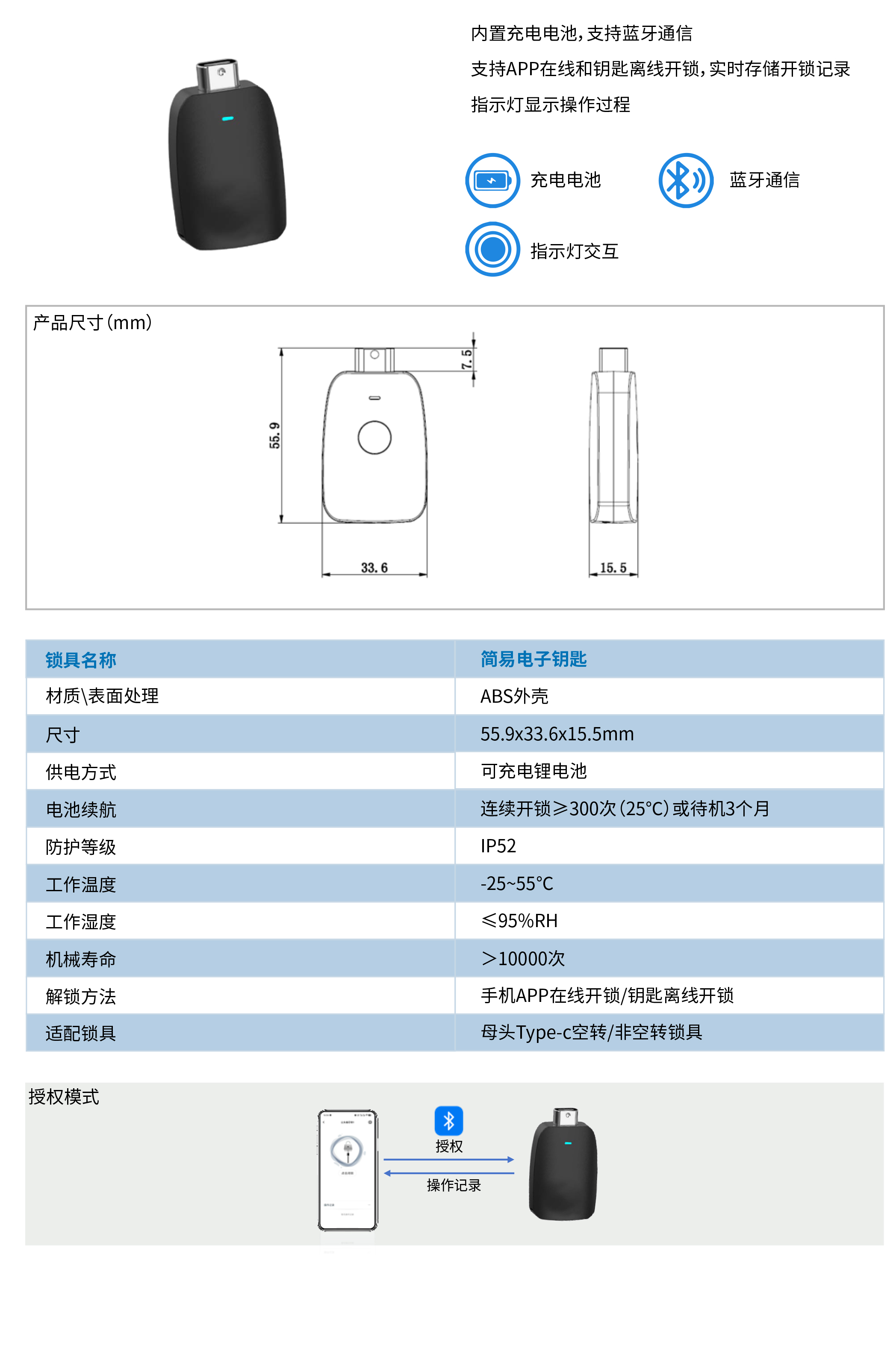 智能(néng)電(diàn)子(zǐ)挂鎖,可(kě)使用(yòng)APP對(duì)電(diàn)子(zǐ)鑰匙授權
